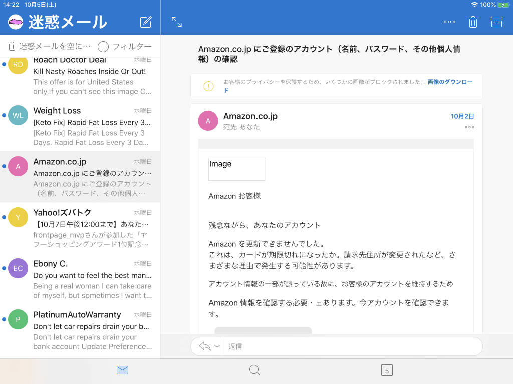- メニューから迷惑メールを選択します。