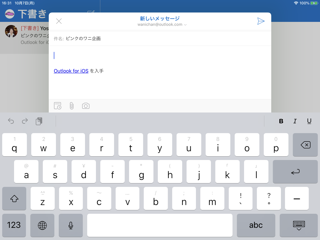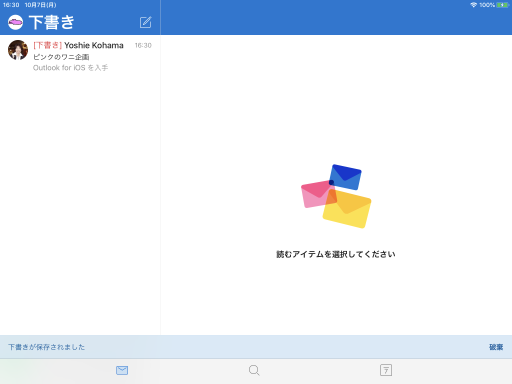 ※執筆環境:Outlook for iPad バージョン 4.5.0