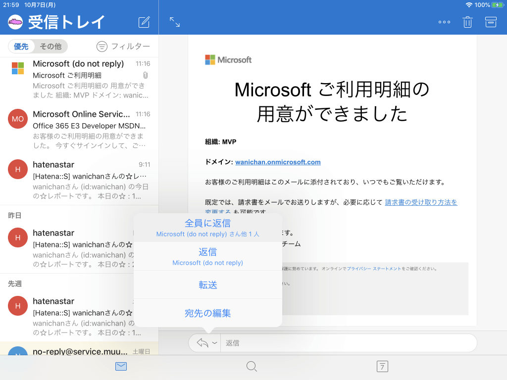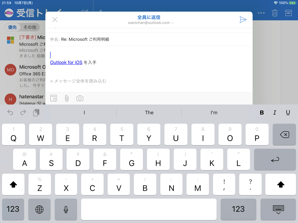 ※執筆環境:Outlook for iPad バージョン 4.5.0