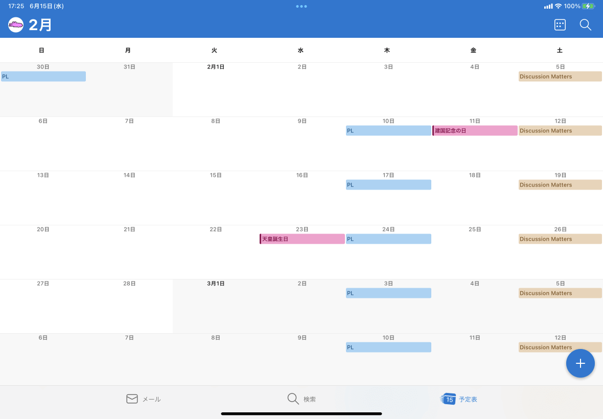 - 予定表画面左上のアカウントのアバター(ロゴ)をタップします。
