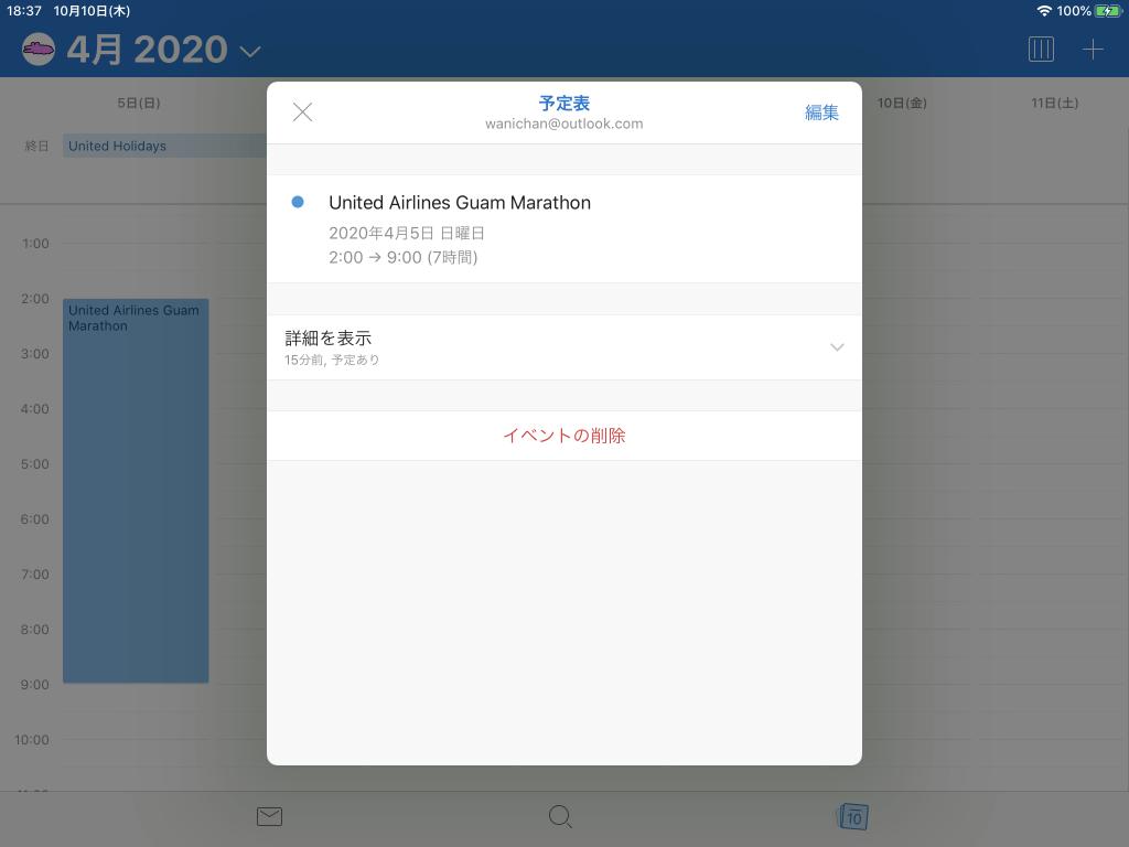 ※執筆環境:Outlook for iPad バージョン 4.6.0