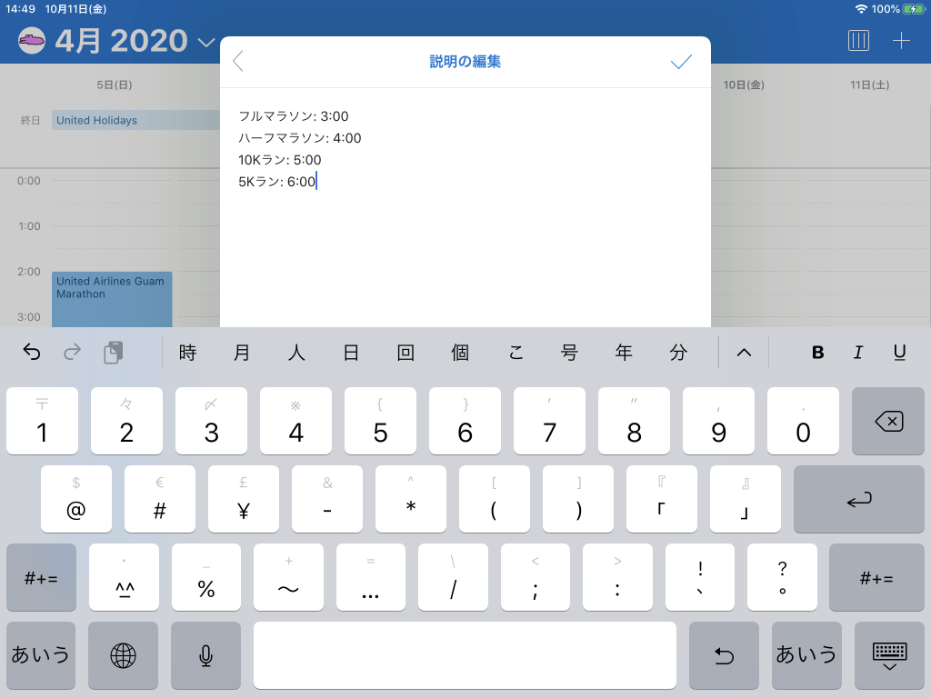 - イベントが編集できるようになりました。ここでは説明欄に情報を加えてみましょう。[説明]をタップします。