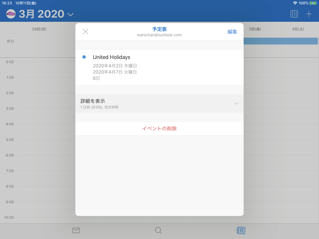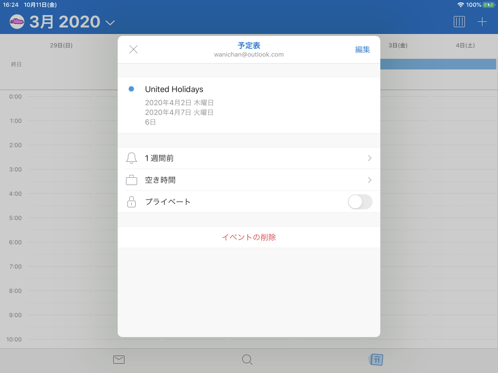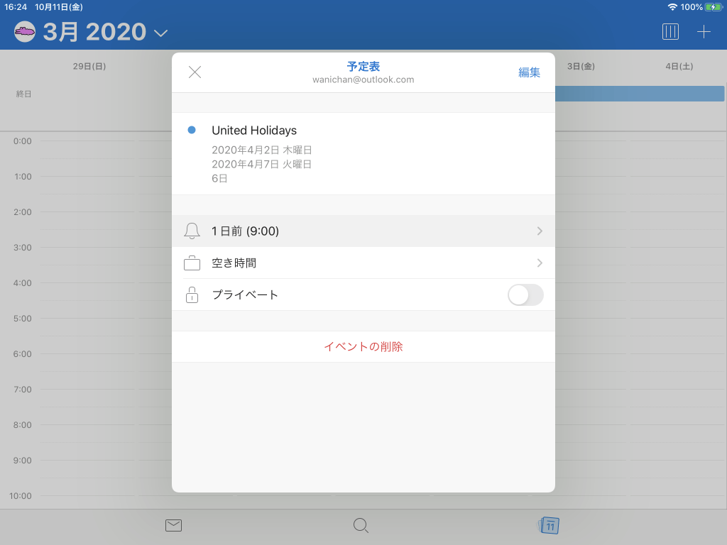 ※執筆環境:Outlook for iPad バージョン 4.6.0