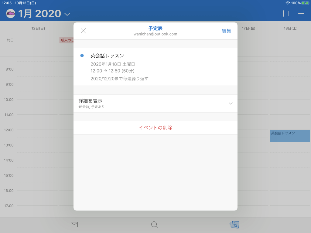 ※執筆環境:Outlook for iPad バージョン 4.6.0