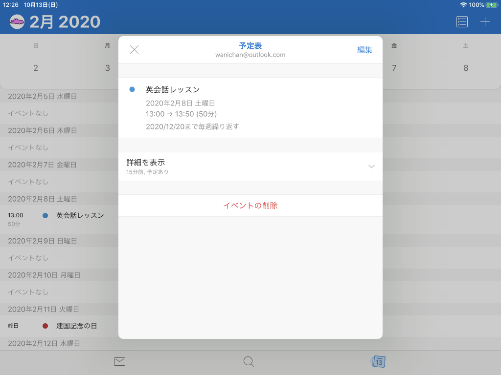 ※執筆環境:Outlook for iPad バージョン 4.6.0