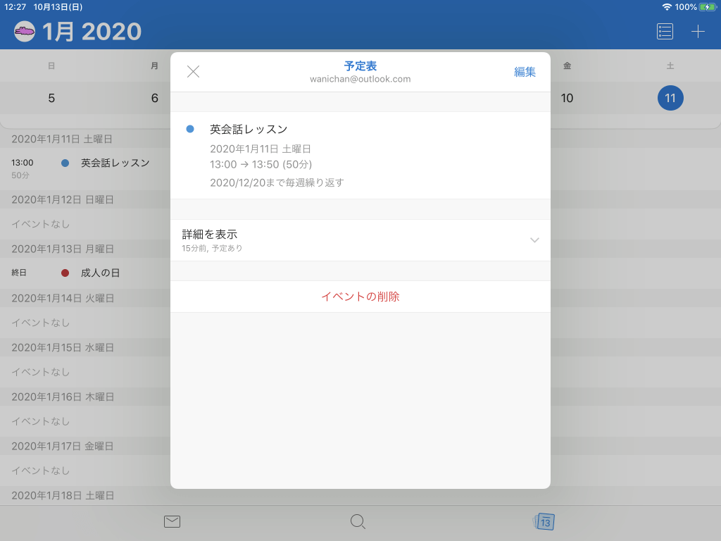 ※執筆環境:Outlook for iPad バージョン 4.6.0