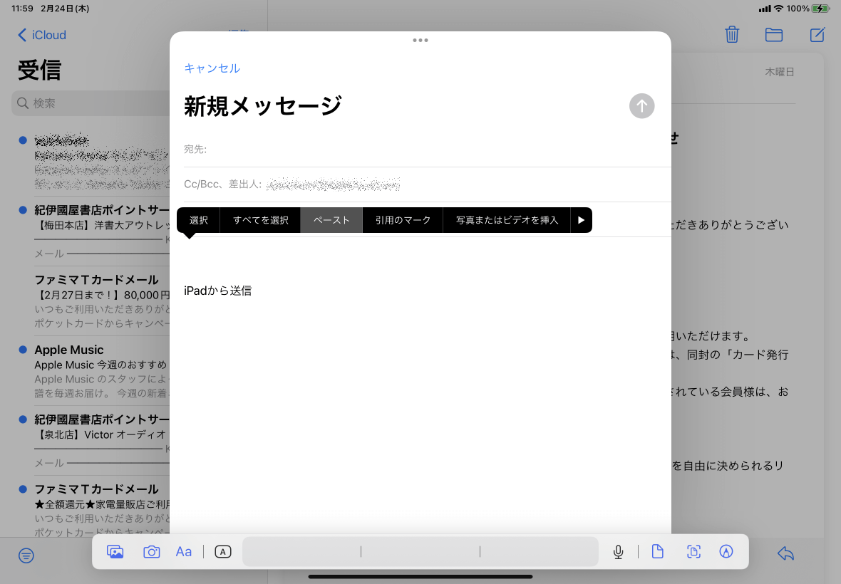 - そのリンクを貼り付けるには、貼り付けたいところにカーソルを移動して[ペースト]をタップします。