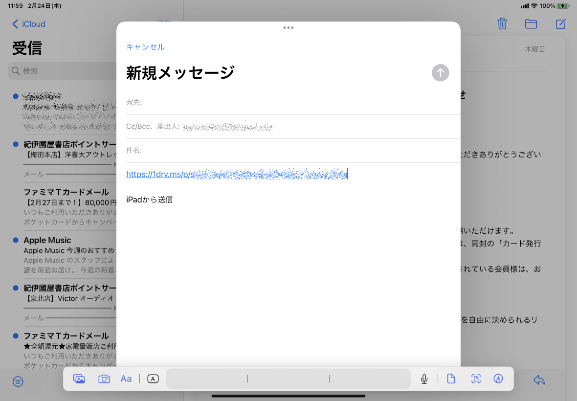電子メールアドレスが不明な場合、あるいは、不特定多数の人たちにプレゼンテーションを見せたい場合、PowerPoint for iPadでプレゼンテーションへのリンクを作成するとOKです。表示リンクは編集は許可されず、閲覧のみとなります。