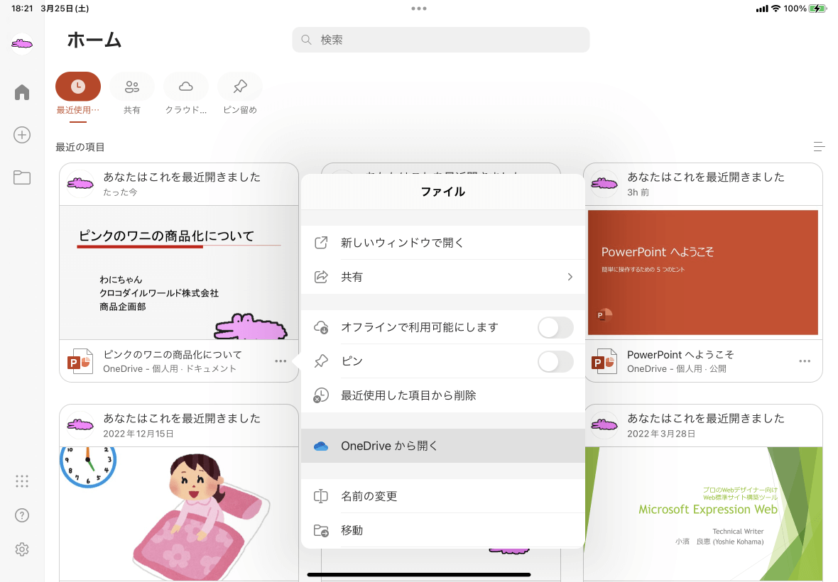 ※執筆環境:PowerPoint for iPad バージョン 2.71 / OneDrive for iPad バージョン14.3.1