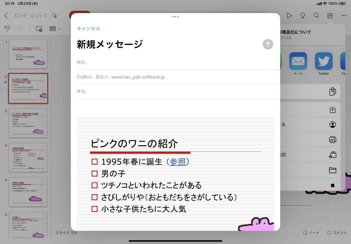 - Outlookアプリが起動し、新規メッセージに画像に変換されたスライドが添付されました。