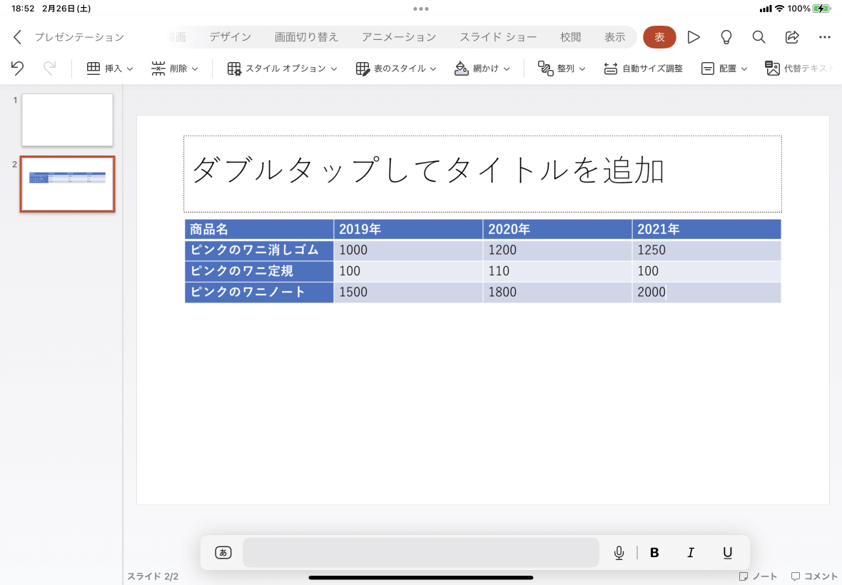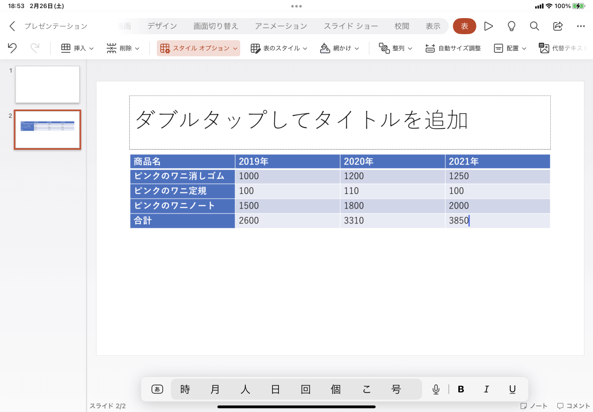 ※執筆環境:PowerPoint for iPad バージョン 2.58