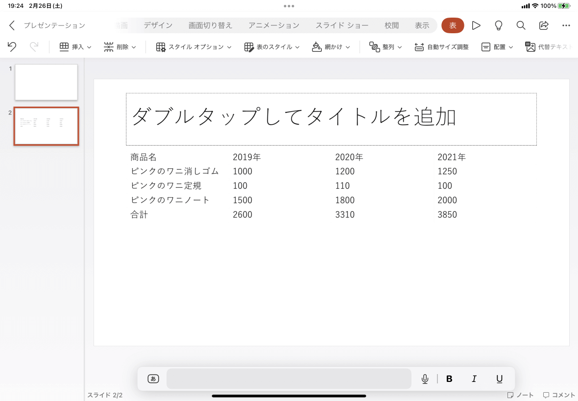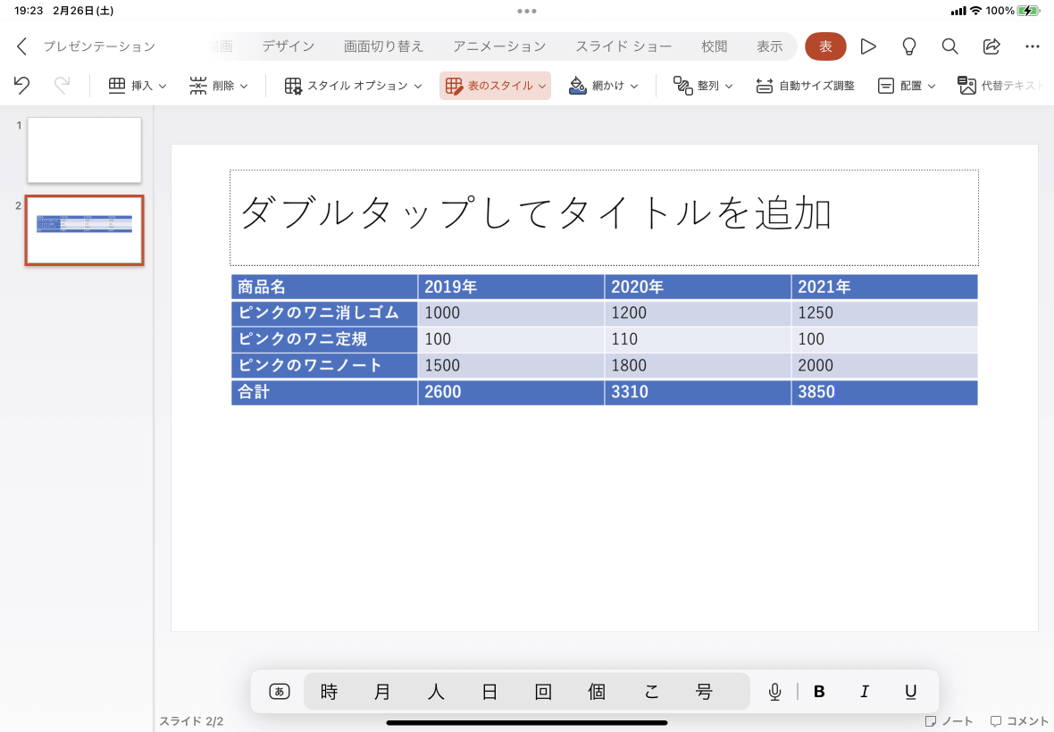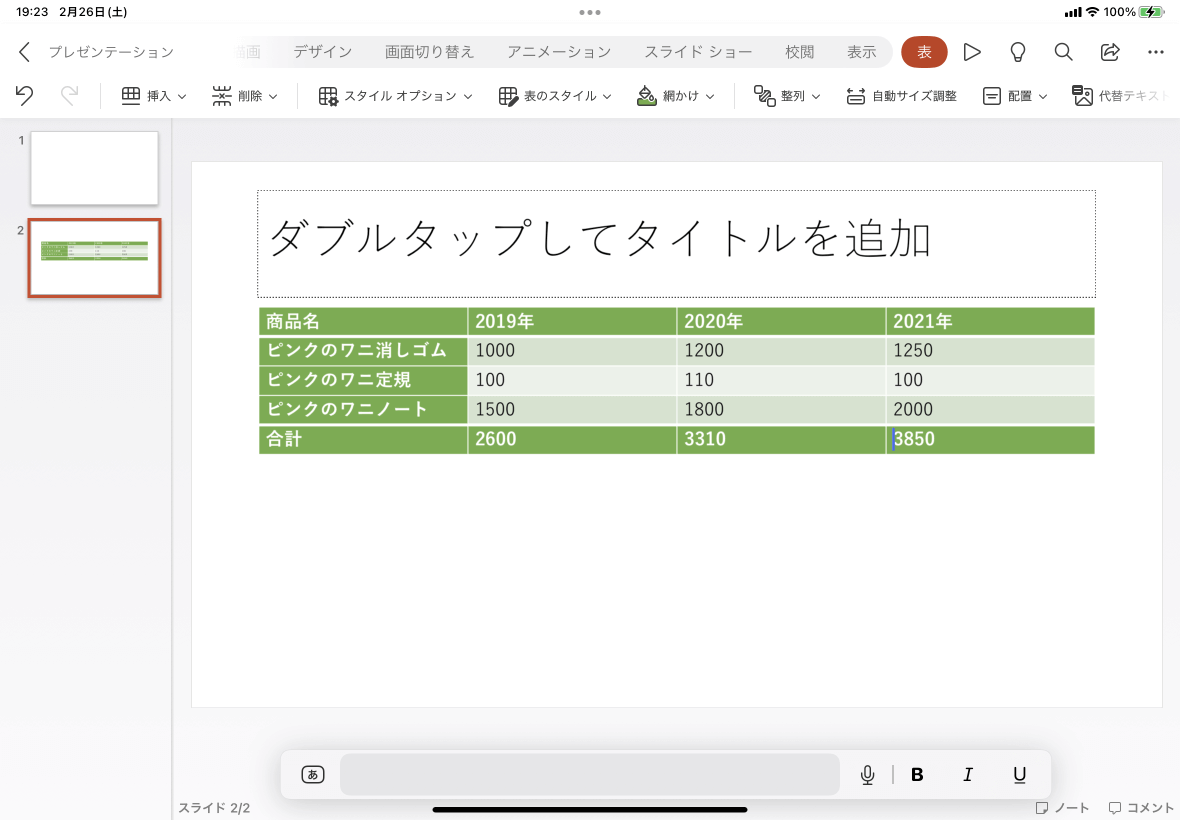 ※執筆環境:PowerPoint for iPad バージョン 2.58