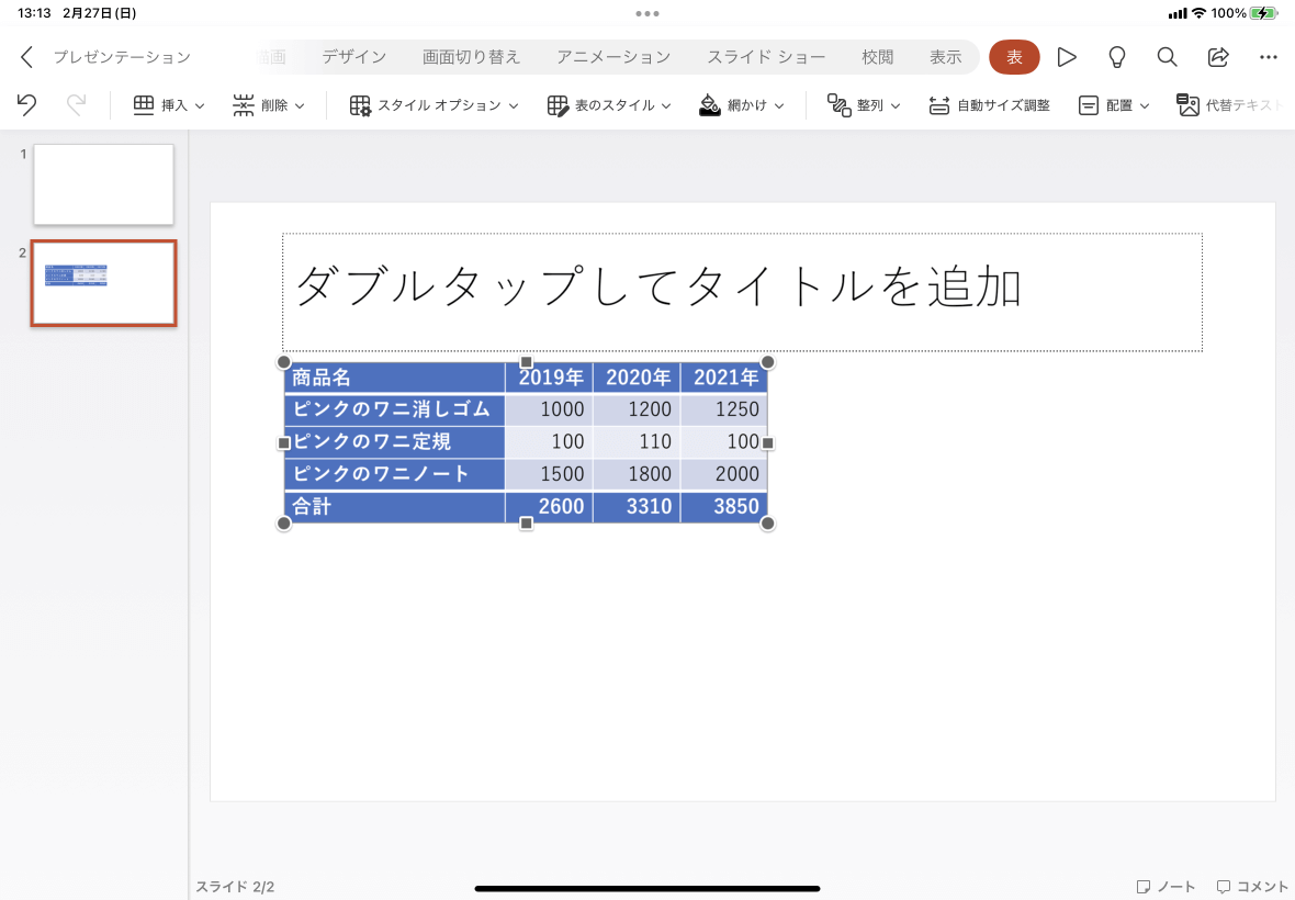 ※執筆環境:PowerPoint for iPad バージョン 2.58