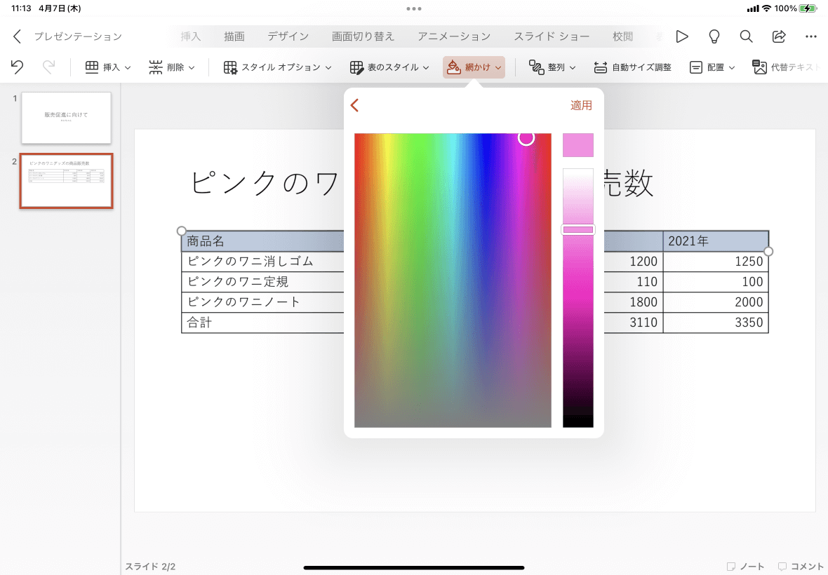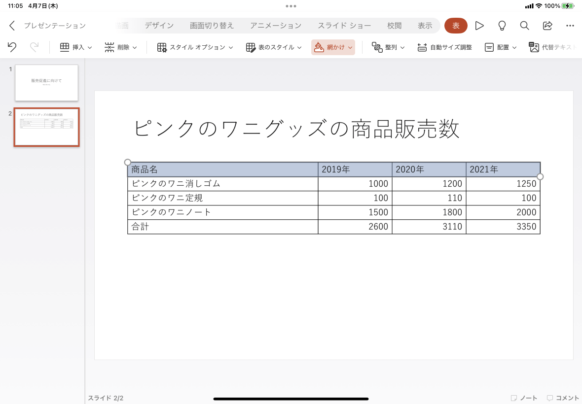 ※執筆環境:PowerPoint for iPad バージョン 2.59.1