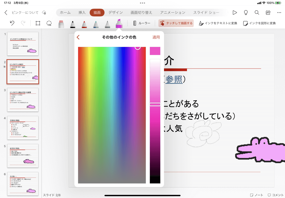 - インクの色を作成して[適用]をタップします。