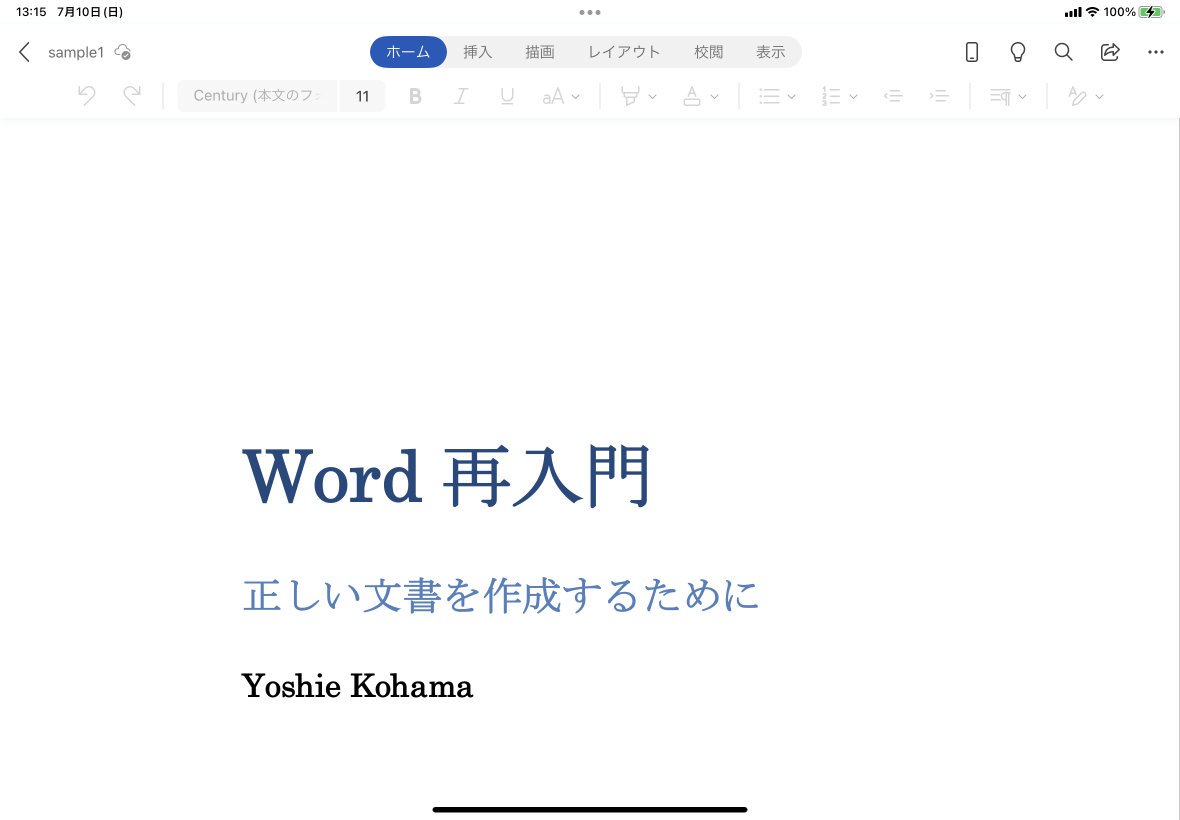 Section 1 Word for iPad の導入