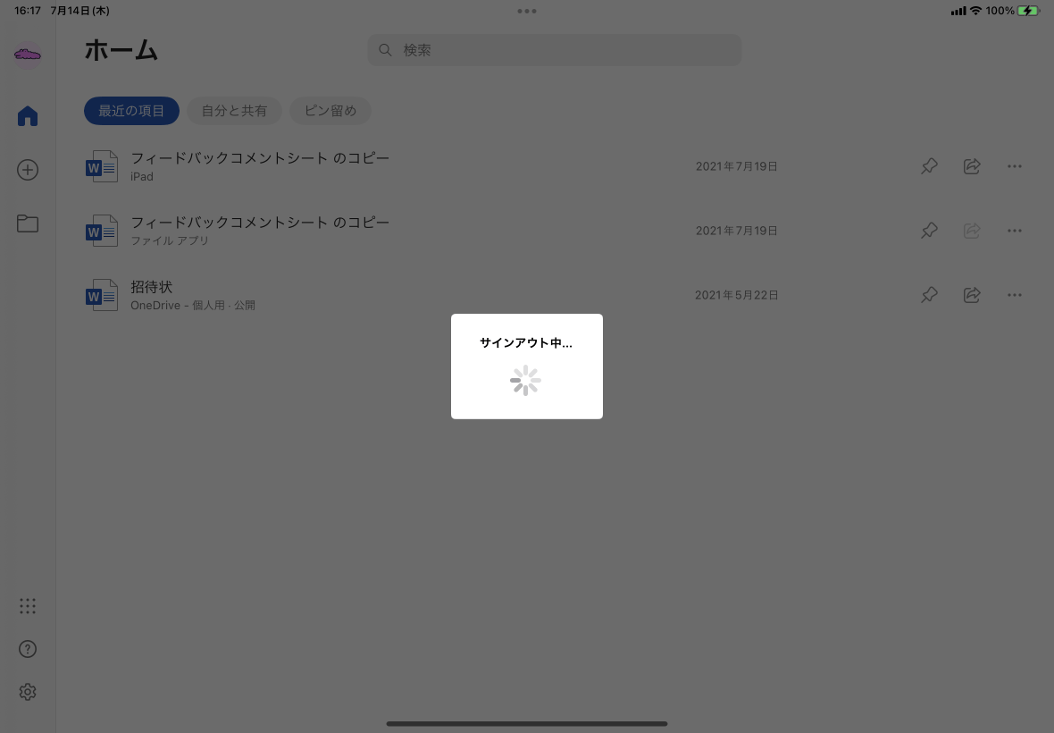 追加されたアカウントからサインアウト