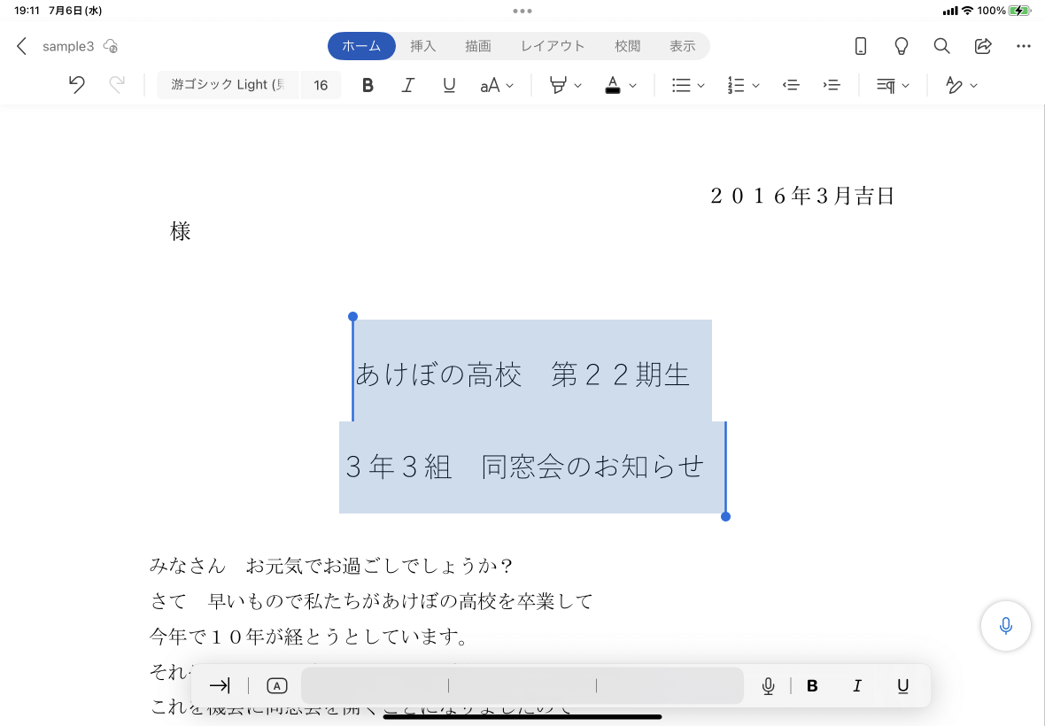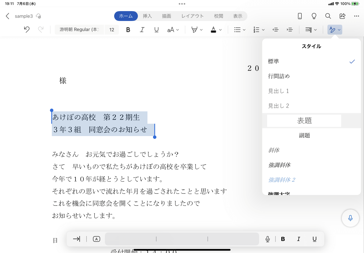 ※執筆環境:Word for iPad バージョン 2.62