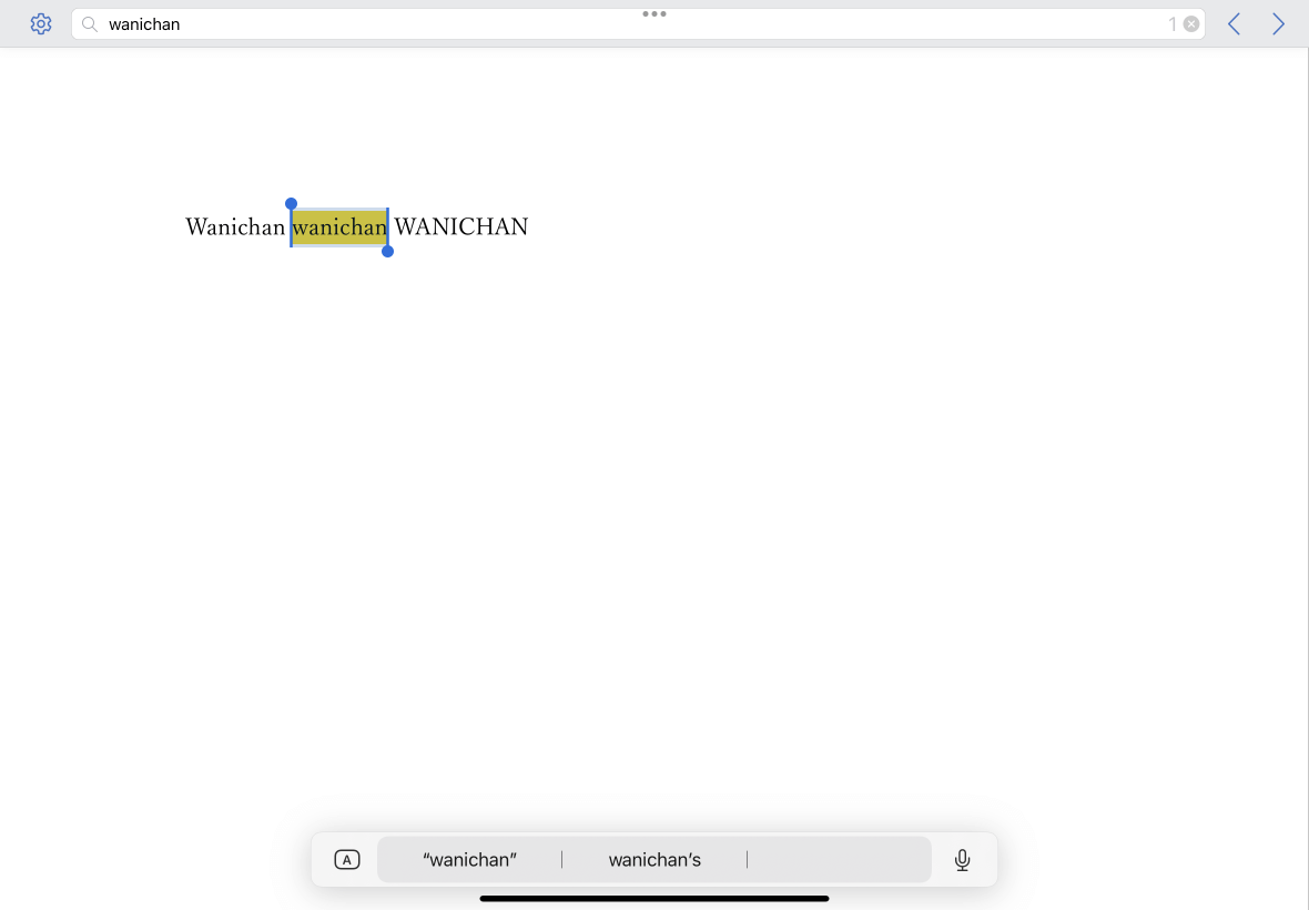 Word for iPadでは、英語のあいまい検索や単語単位、大文字・小文字の区別をして検索や置換を行うことが可能です。画面右上の