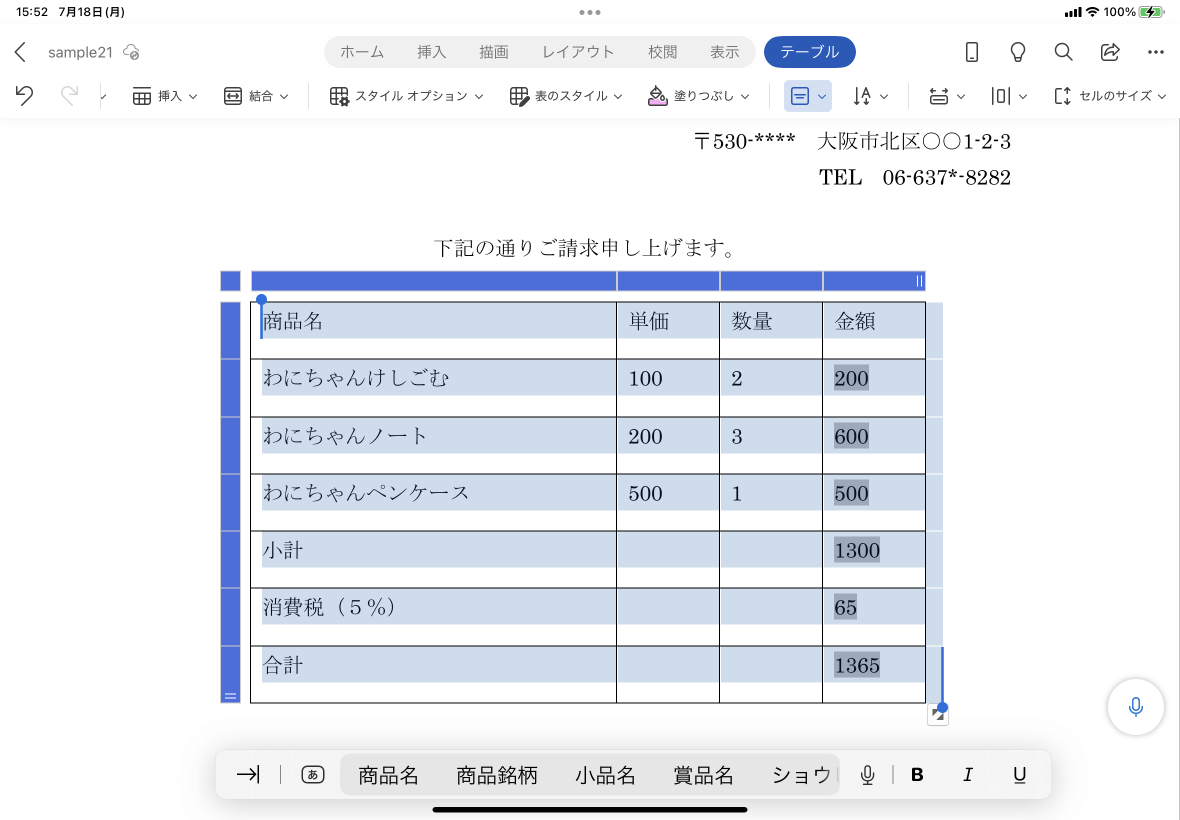 ※執筆環境:Word for iPad バージョン 2.63.1
