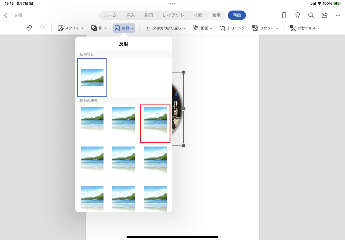 - 一覧から反射効果を選択します。
