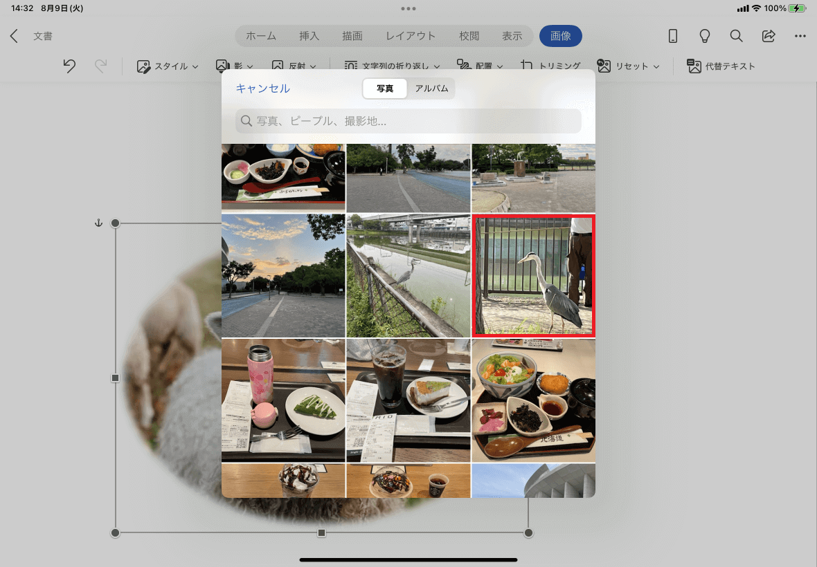 - 「写真」アプリのライブラリより差し替えたい写真を選択します。