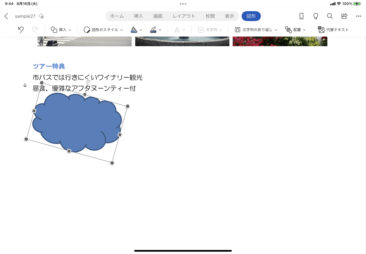 回転ハンドルが表示されます。そのハンドルを使って図形を回転できます。