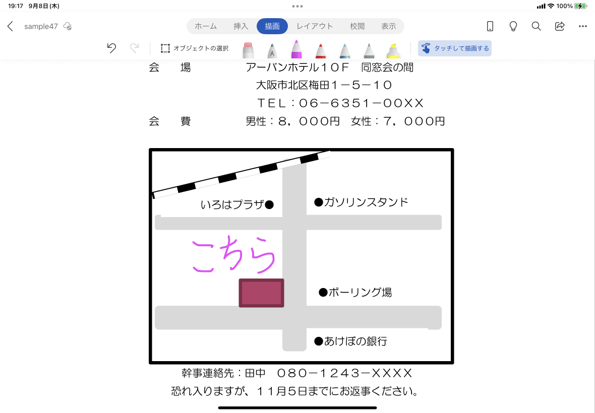 描画中にきらきらアニメーションが再生されます。この機能は、とりわけPowerPointでプレゼン中にインクを再生したいときに効果的です。Wordアプリでは描画中に楽しめるだけなので、ここでは敢えて深掘りはしません。