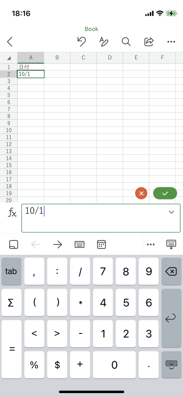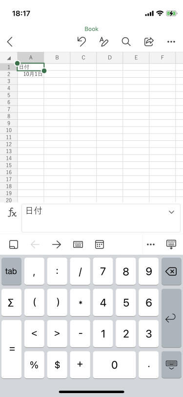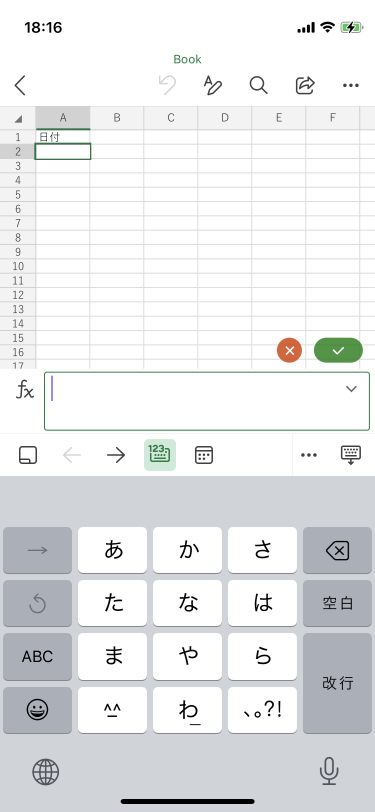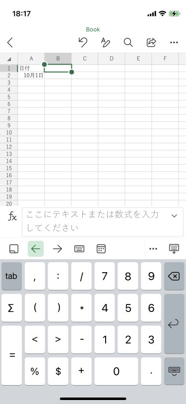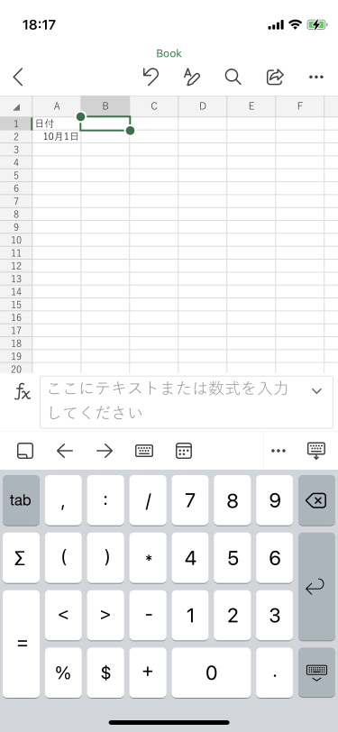 - 入力したいセルをダブルタップするか、入力したいセルを選択して、数式バー内をタップします。