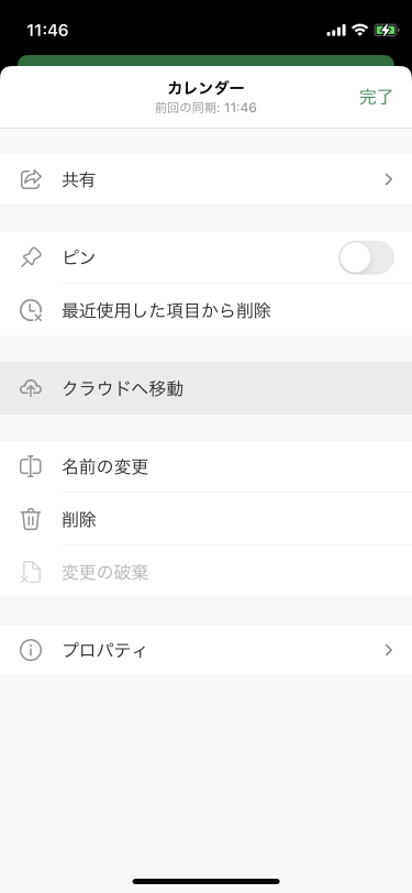 [ファイル]をタップし、[クラウドへ移動]を選択して、移動先の場所を指定します。