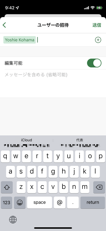 - 電子メールアドレスを入力します。もし招待する人に編集を禁止するには、[編集可能]のスイッチをオフにします。