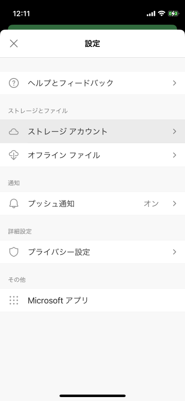 - [設定]オプションから[ストレージアカウント]をタップします。