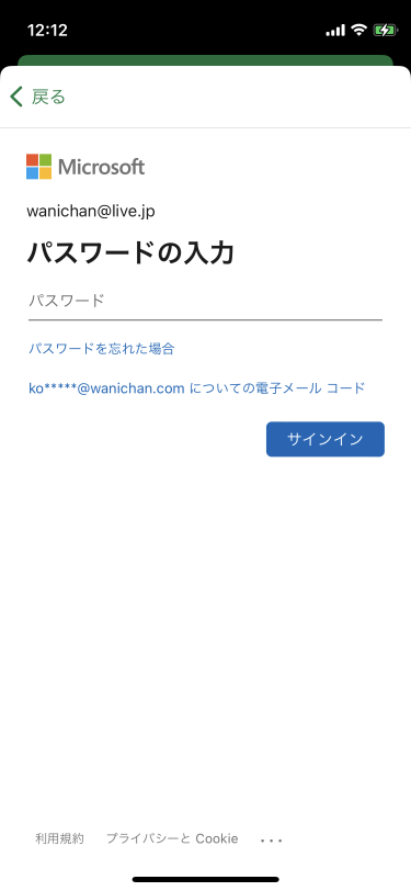 - サインインの画面が表示されるのでアカウントを入力し、[次へ]ボタンをタップします。