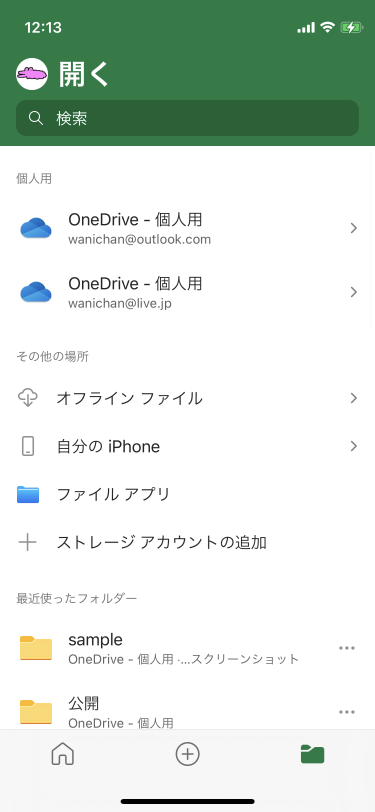 - ホーム画面の[開く]を開くと、他のOneDriveに接続されていることを確認できます。
