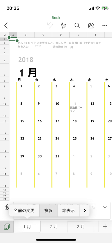 [シート見出しの表示]をタップしてシート見出しを表示しておきます。