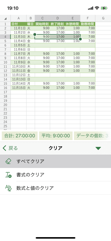- すべてクリアにしたいセルを選択し、
