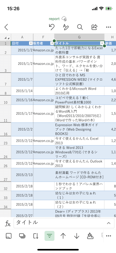 - 抽出したい列見出しのフィルターボタンをタップするか、下端ツールバーから