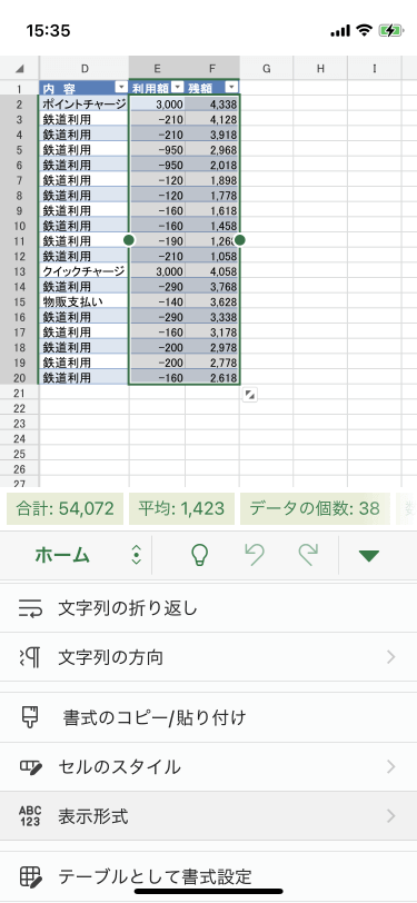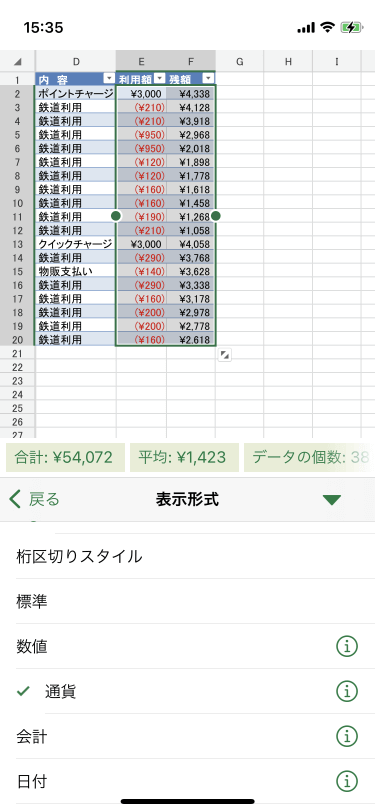 ※執筆環境:Excel for iPhone バージョン 2.67.2