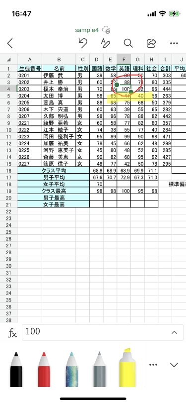 - ワークシート上になぞると、蛍光ペンが引かれました。