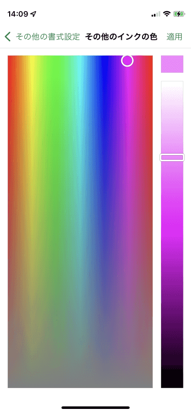 - 指定したい色を作成し、[適用]をタップします。