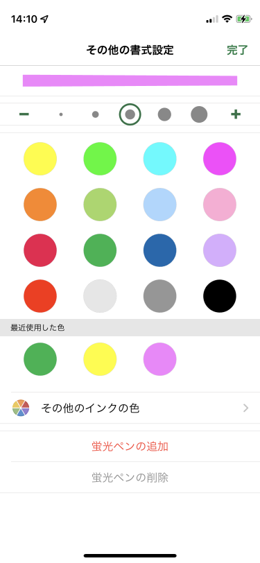 - [その他の書式設定]一覧から[その他のインクの色]をタップします。