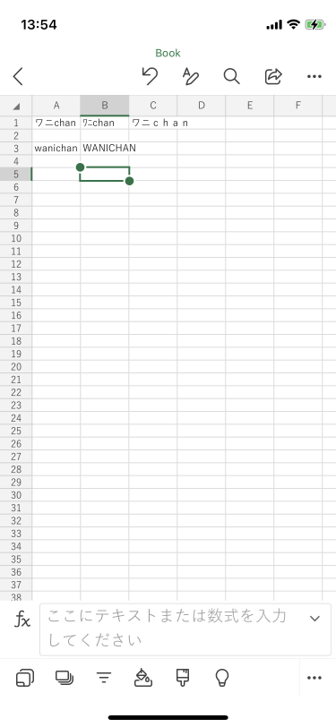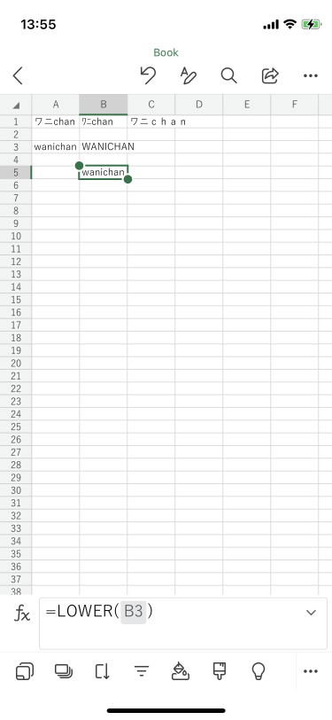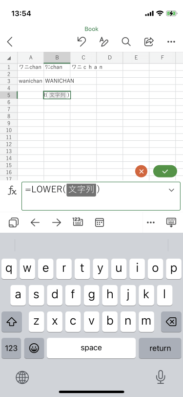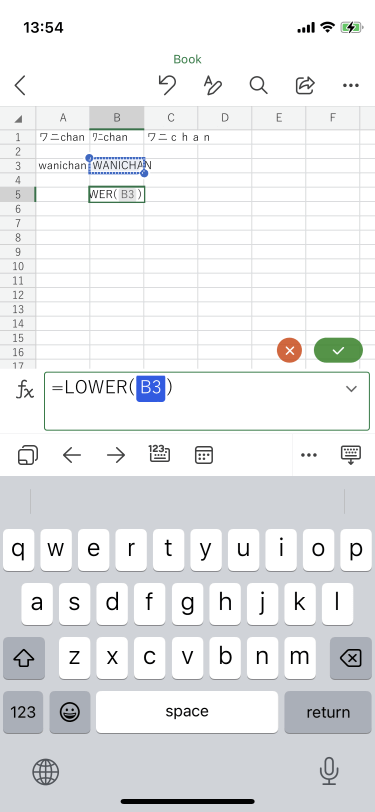 for iPhoneで小文字に変換したいセルを選択して、数式バーの左側の