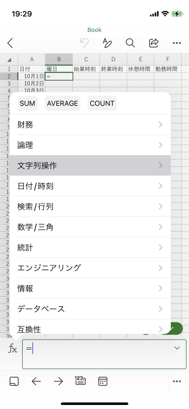 [関数の挿入]をタップします。