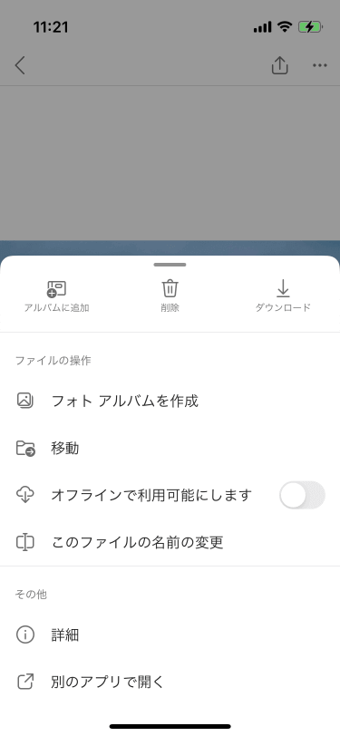 - OneDriveアプリを起動し、ダウンロードしたい写真を開きます。