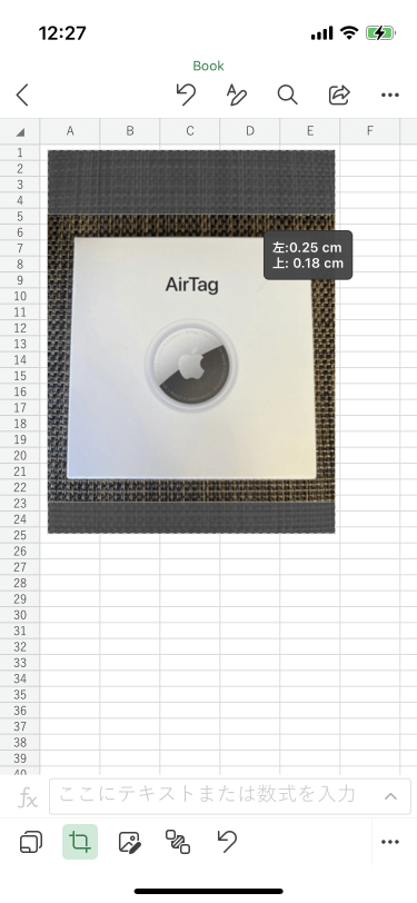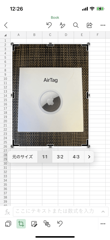 - トリミングしたい図を選択して画面下部のツールバーから[トリミング]ボタンをタップします。