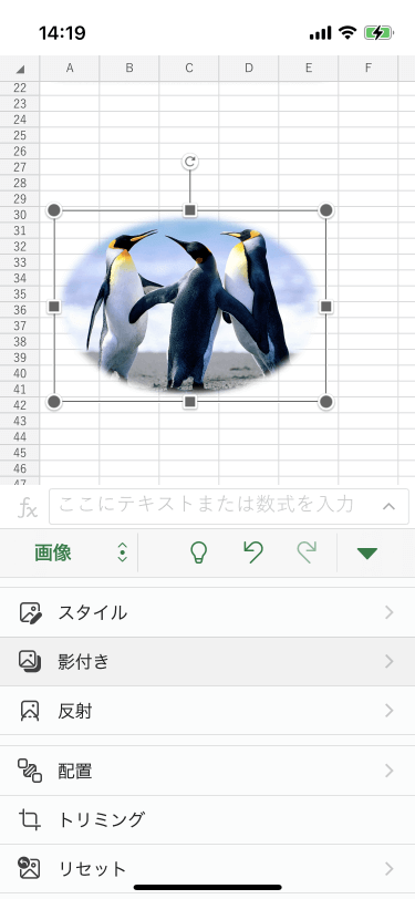 - [画像]タブの[影付き]コマンドをタップします。