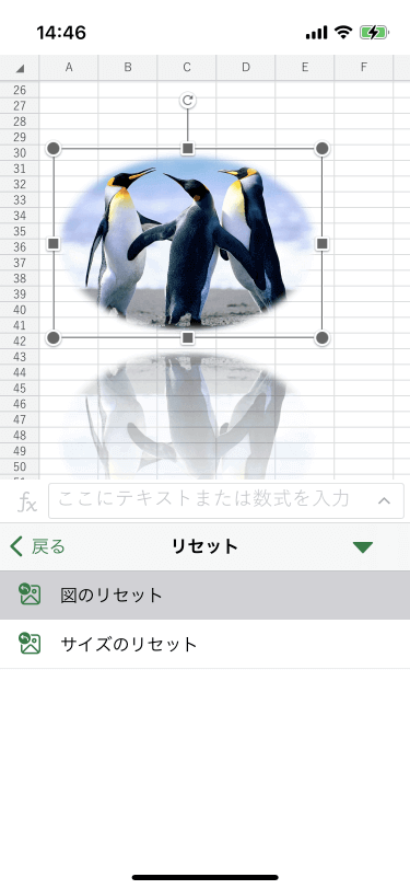 [リボンを開く]をタップして[画像]タブを開き、[リセット]をタップして、[図のリセット]を選択します。