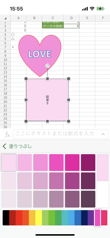 - [塗りつぶし]一覧から色を選択します。一覧にない色は[その他の色]を選択します。