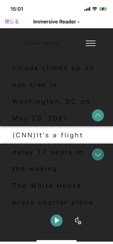- イマーシブリーダー画面の右上の三本線をタップします。