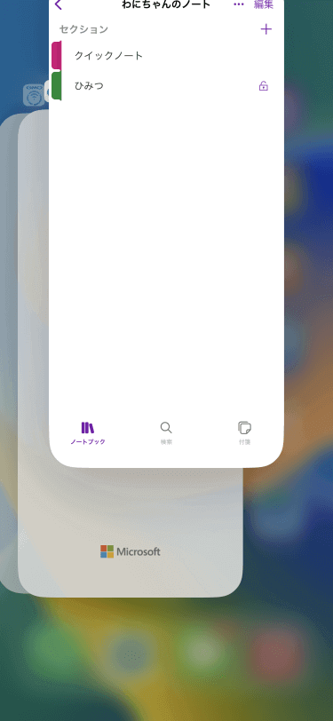 保護されたセクションは一定時間が経過するとロックされますが、すぐにセクションをロックしたい場合は、セクションの右側のロックアイコンをタップするとOKです。OneNoteアプリを再起動してもOKです。